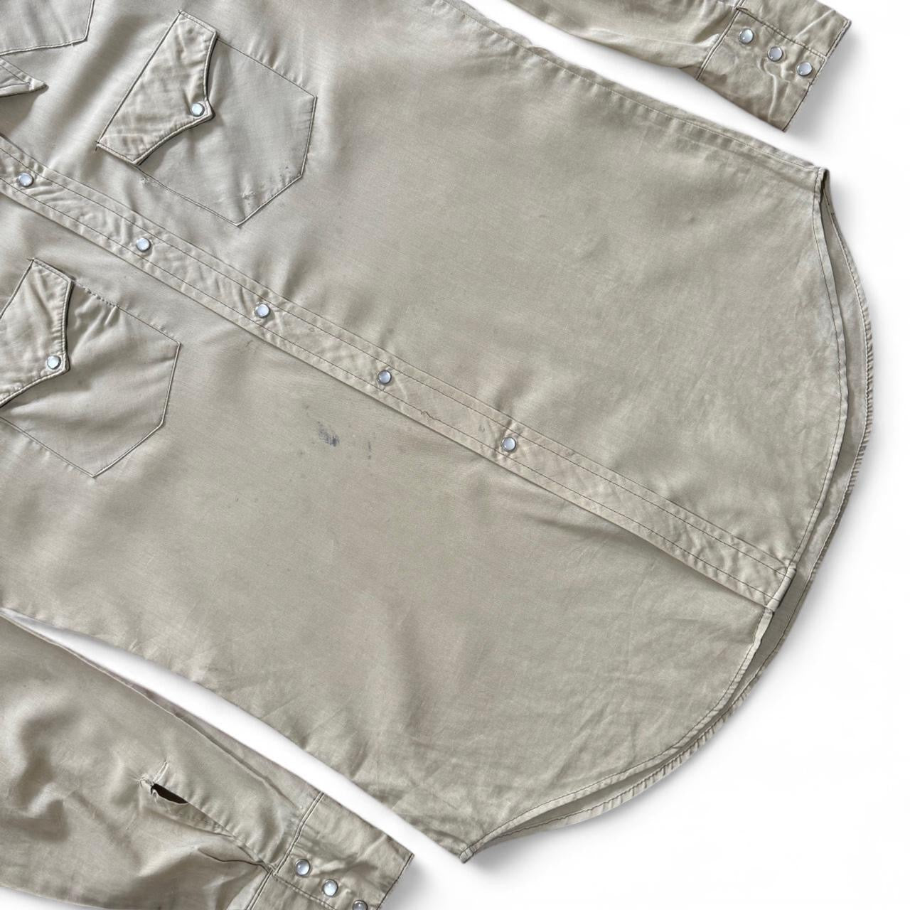 70s Tan Khaki Pearl Snap Western Cowboy Point Collar Button Up