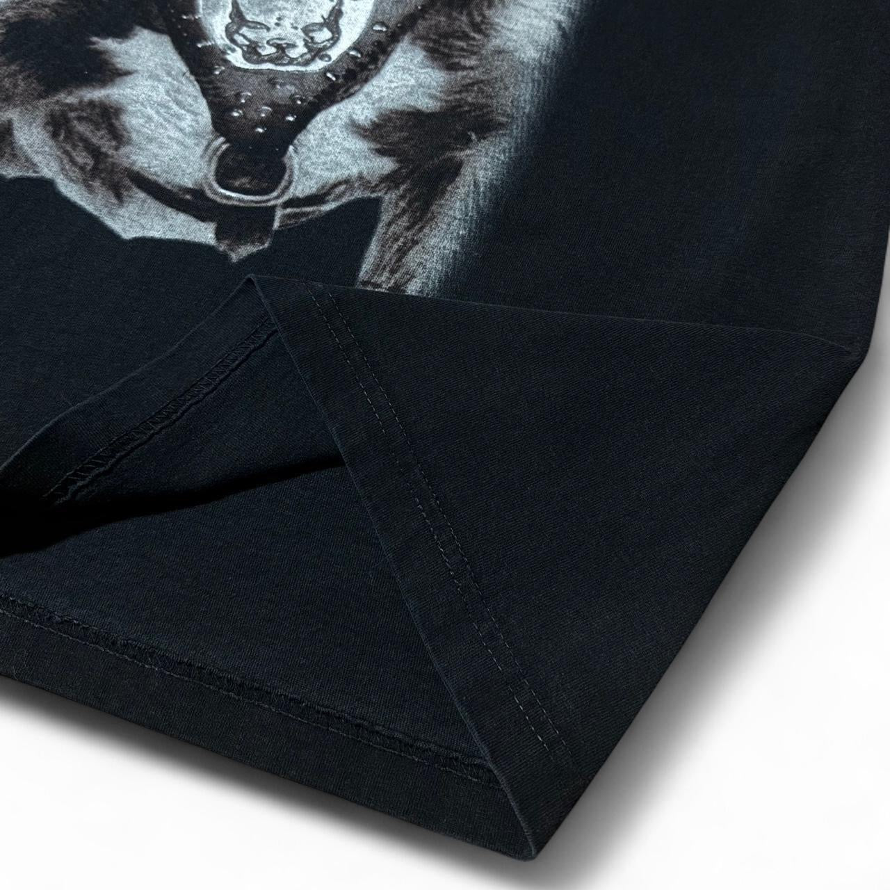 Vintage Y2K Pitbull Tattoo Babe Dog ‘Bite First’ Script Tee